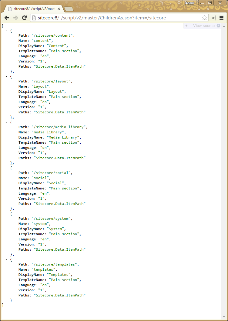 Now when we save the script with a ChildrenAsJson name to a Web API library in our module, we can call it as follows: