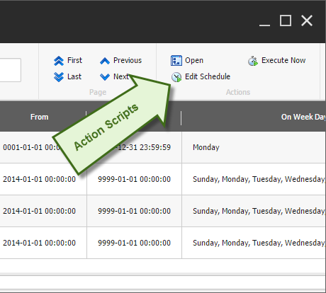 The following screenshot shows how to create an action that only appears in reports that list objects of type Item that are of template Schedule.